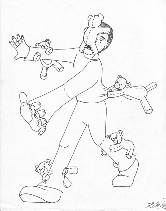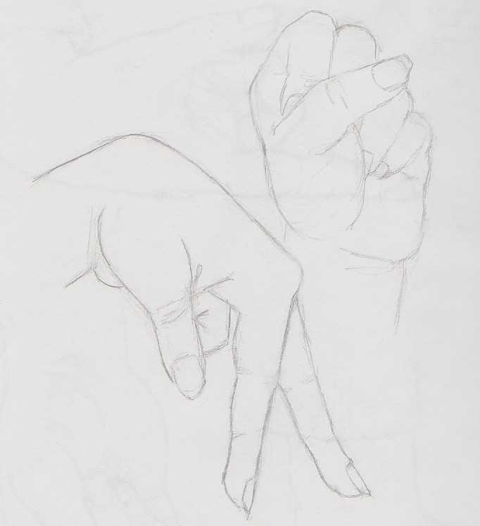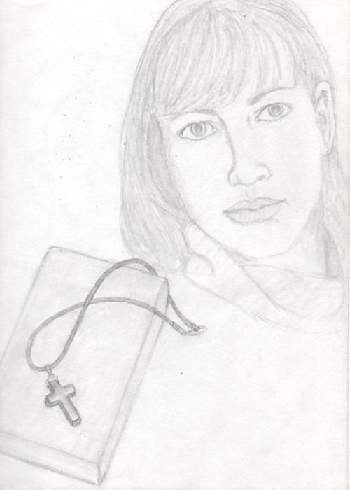 Self-Portrait with sketch of Necklace in foreground, pencil